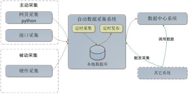 數(shù)據(jù)自動(dòng)采集抓取系統(tǒng)分網(wǎng)頁(yè)采集和接口采集,采集到的數(shù)據(jù)調(diào)用大數(shù)據(jù)中心系統(tǒng)提供的接口輸入到數(shù)據(jù)中心中,其它系統(tǒng)需要的數(shù)據(jù)直接從數(shù)據(jù)中心系統(tǒng)中獲取,同時(shí)也可以讓數(shù)據(jù)自動(dòng)采集抓取系統(tǒng)被動(dòng)觸發(fā)采集,獲取最新數(shù)據(jù)。數(shù)據(jù)自動(dòng)采集抓取系統(tǒng)提供定時(shí)采集功能,設(shè)置采集時(shí)間和周期進(jìn)行定時(shí)采集,也可以提供接口調(diào)用采集。