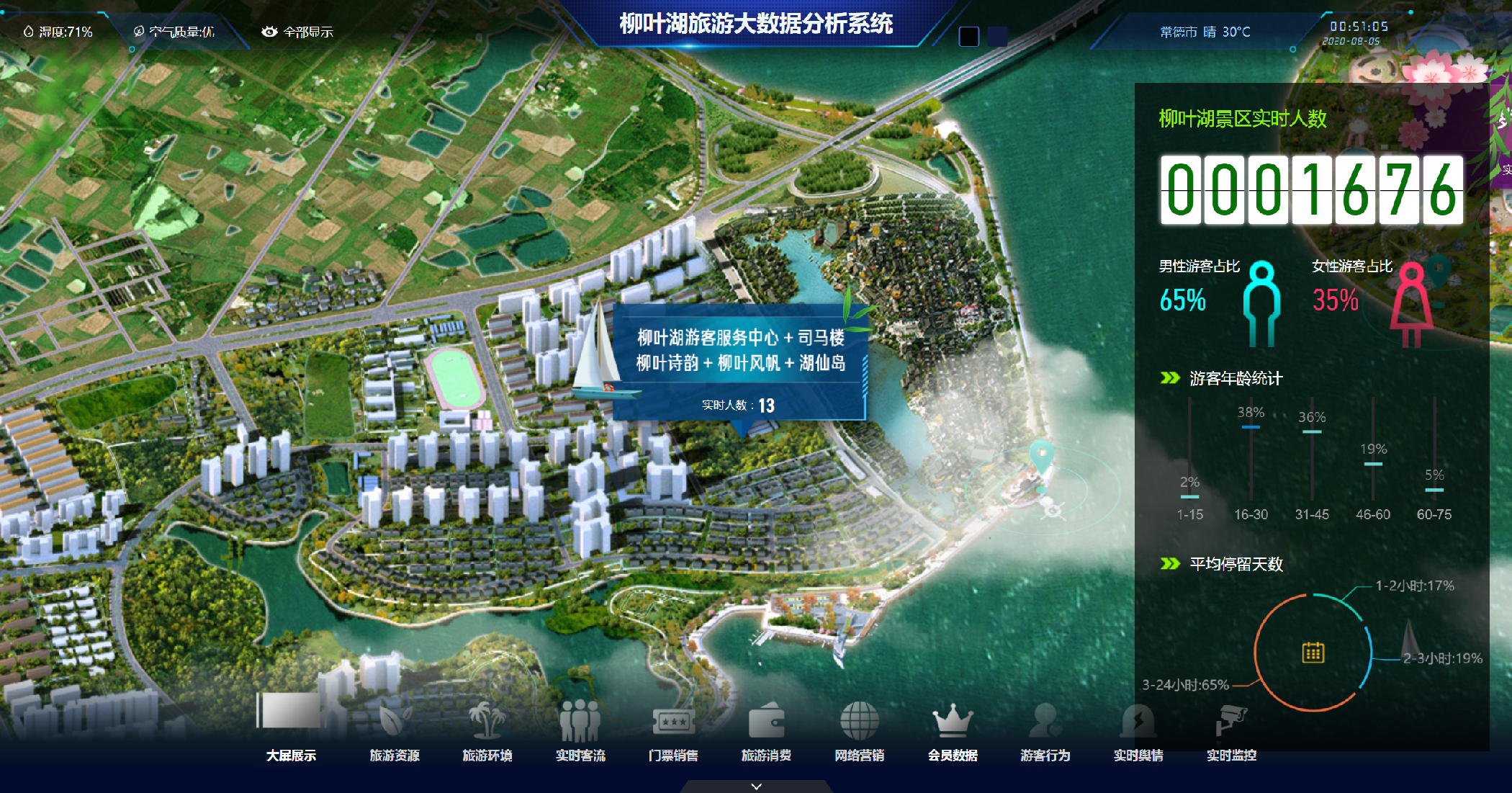 通過一系列軟硬件平臺(tái)的開發(fā)部署,柳葉湖智慧旅游能初步實(shí)現(xiàn)行業(yè)監(jiān)測(cè)、客流分析、指揮調(diào)度、游客服務(wù)等功能。