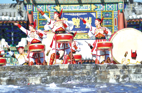 △ 2018年1月8日,在山西運城市新絳縣古城“絳州”的鐘樓、鼓樓、樂樓三樓景區(qū),新編迎新年賀新春絳州鼓樂賀演在加緊排練。高新生攝