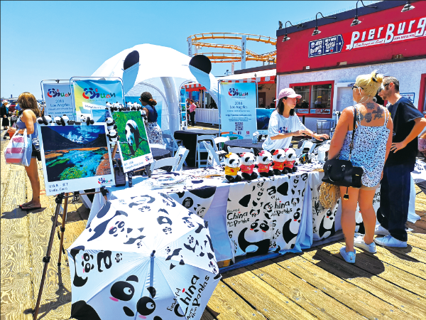 △ 2018年6月28日,在美國洛杉磯圣莫妮卡海灘進(jìn)行了四川旅游宣傳,以熊貓走世界美麗四川活動為背景,熊貓彩繪DIT活動吸引了不少當(dāng)?shù)厝罕娂坝慰汀?/p>