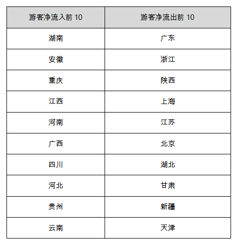 2019年春節(jié)游客凈流入和流出前10位省域