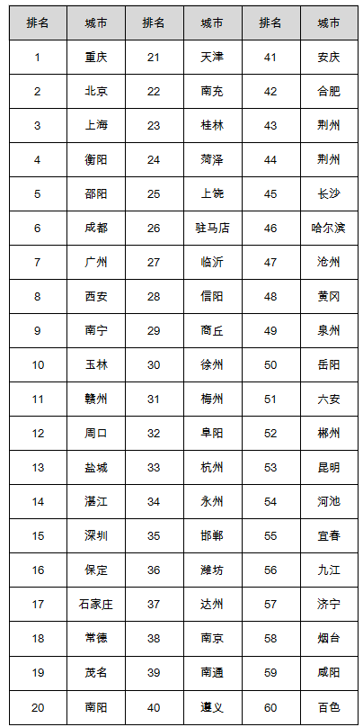2019年春節(jié)游客接待前60位城市