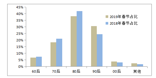 旅游過(guò)年追求生活品質(zhì)。中國(guó)旅游研究院與銀聯(lián)商務(wù)聯(lián)合實(shí)驗(yàn)室數(shù)據(jù)顯示,2019年春節(jié)期間高品質(zhì)住宿設(shè)施消費(fèi)人次增長(zhǎng)超過(guò)45.3%,較上年同期提高7.7個(gè)百分點(diǎn)。其中35-44歲之間的男性支付占比最高,達(dá)到28.1%。此外,2019年春節(jié)期間游客餐飲日均消費(fèi)筆數(shù)較節(jié)前提高43.7%,其中80后餐飲消費(fèi)總金額最高。中國(guó)旅游研究院與深大智能聯(lián)合課題組研究發(fā)現(xiàn),通過(guò)在線平臺(tái)購(gòu)買旅游吸引物門票的游客中,80后同樣居于領(lǐng)先位置,與90后的差距明顯縮小。