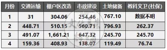 全國1至4月地方債券資金重點(diǎn)投向情況