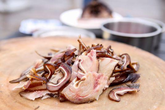 臘味,也成為旅行者之于美景之外的“另一道風(fēng)味”。前三次蘇群皆是為云海而來,第四次前往是尋味,就著眼前云海撩,背后萬頃山,取、切,炒,體驗了一頓臘味十足的“臘味宴”。