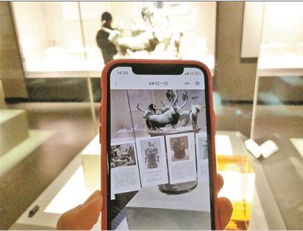 四川游客孫靜的感受除了方便還有更豐富的體驗(yàn)。不久前,孫靜和朋友參觀了云南省博物館。參觀前,她用微信上的“云游文博”小程序“未到先看”,瀏覽了部分館藏珍品的數(shù)字3D模型。而在博物館現(xiàn)場參觀時她又發(fā)現(xiàn)了新的玩法:使用微信小程序中的“AR掃一掃”功能,對準(zhǔn)展廳中的?;~案、四牛鎏金騎士銅貯貝器等重要藏品掃描,手機(jī)頁面上出現(xiàn)了“懸浮”的簡介板,上面有詳細(xì)的文物鑒賞知識、文物歷史背景等。孫靜說:“人們走進(jìn)博物館就是想了解當(dāng)?shù)氐臍v史文化,把信息技術(shù)與歷史文化結(jié)合,歷史知識更吸引人了?!?/p>