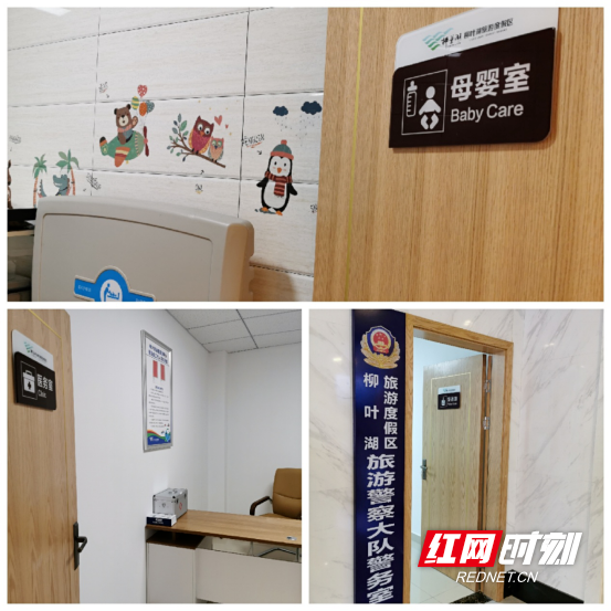 游客中心內(nèi)設(shè)置有休憩桌椅,可同時(shí)滿足40位游客的休憩需求;設(shè)置了警務(wù)室、醫(yī)務(wù)室和母嬰室,并設(shè)有自助查詢機(jī),可供游客便捷查詢柳葉湖旅游資訊、活動、路線等信息;設(shè)有共享充電寶,供游客隨時(shí)租借使用;擺放了各類宣傳資料,供游客免費(fèi)取閱。此外,游客中心還提供自助免費(fèi)飲用水,提供雨傘、童車、輪椅、拐杖等便民設(shè)施的租借服務(wù)。