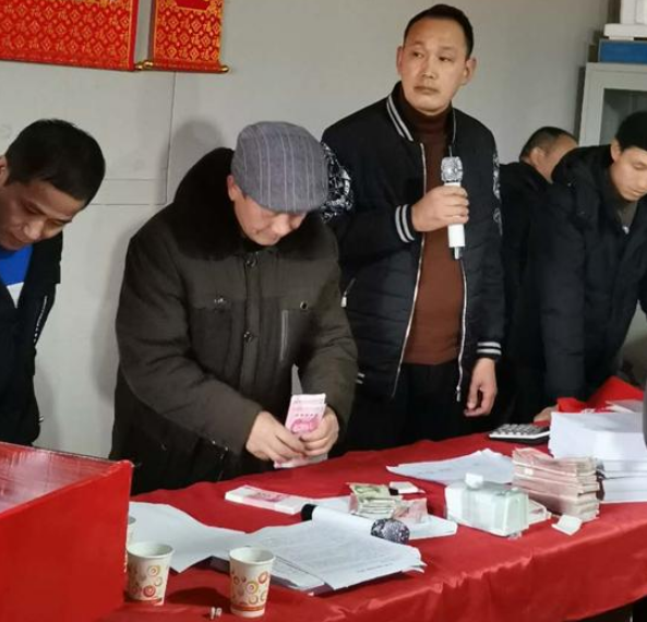 夾山鎮(zhèn)楊坪社區(qū)楊坪一組“騰達(dá)土地專(zhuān)業(yè)合作社”2019年年終分紅現(xiàn)場(chǎng)。受訪(fǎng)者供圖