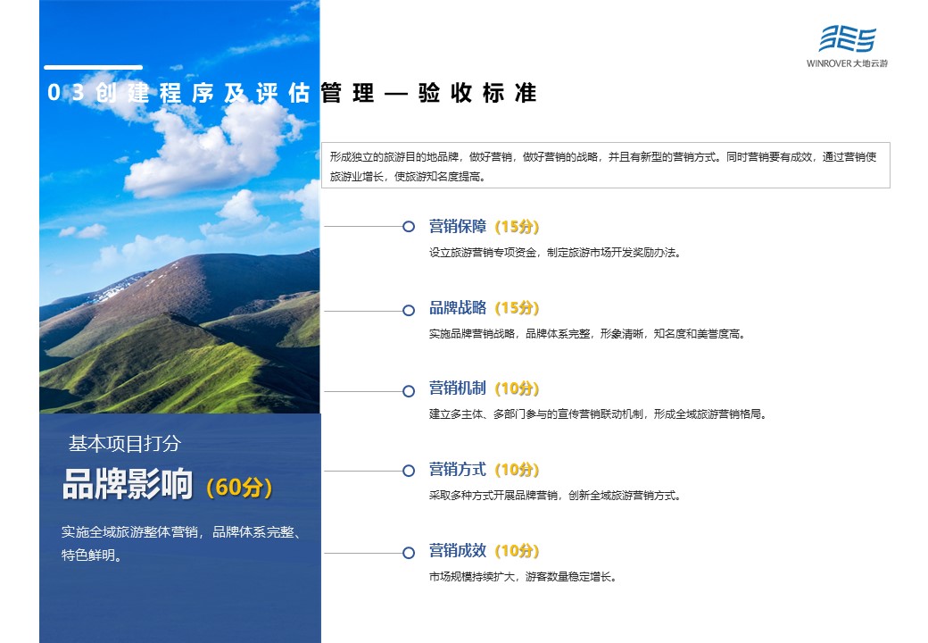 文化和旅游部以省級(jí)文化和旅游行政部門上報(bào)的縣級(jí)、地級(jí)創(chuàng)建單位的初審驗(yàn)收?qǐng)?bào)告等材料為認(rèn)定參考依據(jù),組織召開專家評(píng)審會(huì)對(duì)體制機(jī)制、政策保障、公共服務(wù)、供給體系、秩序與安全、資源與環(huán)境、品牌影響以及創(chuàng)新示范等8個(gè)方面進(jìn)行會(huì)議評(píng)審。根據(jù)最新修訂結(jié)果,認(rèn)定標(biāo)準(zhǔn)在供給體系方面進(jìn)行了適當(dāng)“放寬”,將“具有不少于1個(gè)國家5A級(jí)旅游景區(qū),或國家級(jí)旅游度假區(qū),或國家級(jí)生態(tài)旅游示范區(qū);或具有2個(gè)以上國家4A級(jí)旅游景區(qū)”修改為“具有不少于1個(gè)國家5A級(jí)景區(qū),或國家級(jí)旅游度假區(qū),或國家級(jí)生態(tài)旅游示范區(qū);或具有2個(gè)以上國家4A級(jí)景區(qū);或具有2個(gè)以上省級(jí)旅游度假區(qū);或具有1個(gè)國家4A級(jí)旅游景區(qū)和1個(gè)省級(jí)旅游度假區(qū)?!?/p>