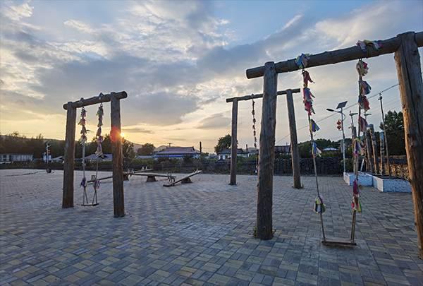 漸漸駛離延吉西站,窗外的稻田郁郁蔥蔥,一叢叢青磚黛瓦的朝鮮族民居鑲嵌在延綿起伏的山巒之間。車子離開公路,駛?cè)胍粭l蜿蜒曲折的鄉(xiāng)路,路旁的住房多了起來,裊裊炊煙也開始生動具體,我們慢慢進(jìn)入了龍井市。