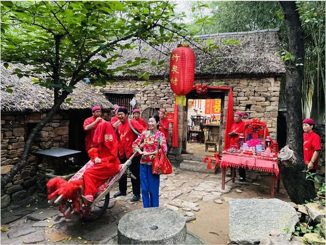 沿著沂蒙生態(tài)大道,驅車到常山莊。這個偏遠的山村被打造為4A級景區(qū),如今被稱作“山村好萊塢”,曾拍攝過《沂蒙》《斗牛》《娘》等300余部影視劇,成龍拍攝《鐵道飛虎》的造景也被保留下來。景區(qū)建設了“中國紅嫂革命紀念館”、“人民子弟兵將帥紀念館”、“跟著共產黨走紀念館”,還參照上世紀20年代風格,建起一座專供影視拍攝的沂州城,以及可接待900名大學生的“沂蒙紅色寫生基地”。景區(qū)及周圍建起了300多家紅色餐飲、紅色商品、農副產品銷售店。2000多名周邊村民,常年從事群眾演員、劇組用工、景區(qū)建設等工作,2015年,貧困戶全部脫貧,2019年,該村人均可支配性收入達到1.5萬元。