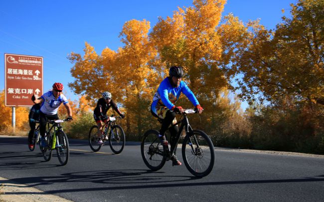 2020中國(guó)額濟(jì)納環(huán)胡楊林自行車賽競(jìng)技現(xiàn)場(chǎng)。(攝影:馬玉)