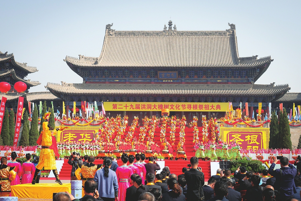 連續(xù)多年舉辦的洪洞大槐樹文化節(jié)尋根祭祖大典吸引了各地游客的參與。本報記者栗美霞攝