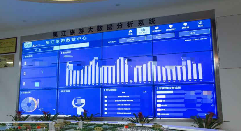 走進(jìn)該服務(wù)中心,記者發(fā)現(xiàn),這里科技感滿滿。首先映入眼簾的是一個(gè)占滿整面墻壁的大屏幕,上面清晰地展示著吳江各景區(qū)景點(diǎn)的大數(shù)據(jù)監(jiān)測(cè)數(shù)據(jù)。吳江區(qū)旅游服務(wù)中心主任陳偉介紹,這個(gè)大數(shù)據(jù)分析系統(tǒng)分客流統(tǒng)計(jì)、客流分析、輿情統(tǒng)計(jì)、滿意度等板塊,景區(qū)游客量、游客的游覽順序、游客在景點(diǎn)的駐足時(shí)間、游客來(lái)自哪里……各項(xiàng)詳細(xì)數(shù)據(jù)在大屏上實(shí)時(shí)更新,一目了然。