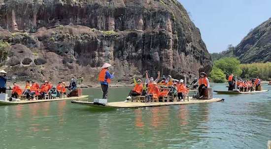 智慧不僅為游客帶來了更為貼心的服務(wù),同時也提升了景區(qū)的管理水平,節(jié)約了人力成本。龍虎山5G+智慧竹筏是全國第一個在竹筏類項目中使用智能管理、智能互動系統(tǒng)的旅游景區(qū)。坐在“智慧竹筏”上,泛舟瀘溪河,游客可通過筏上直播及錄播,并用微信、微博等社交媒體分享游覽內(nèi)容,增添游覽趣味性。同時,智能竹筏監(jiān)控調(diào)度管理平臺通過在竹筏上安裝智能視頻監(jiān)控硬件、GPS定位模組,結(jié)合后臺智能控制中心,可實現(xiàn)對景區(qū)所有竹筏進(jìn)行安全生產(chǎn)監(jiān)控、智能圍欄控制以及所有竹筏智能調(diào)度功能,最大化的提升了旅游體驗和旅游品質(zhì)。龍虎山景區(qū)智慧平臺運(yùn)營中心負(fù)責(zé)人杜杰介紹說:“當(dāng)竹筏出現(xiàn)調(diào)度運(yùn)力不足的時候,景區(qū)可以對游客及時去引導(dǎo),告訴游客一個大概等待時間,緩解游客心里的一個期待。”