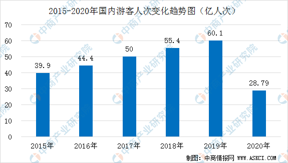 旅游業(yè)是提高人民生活水平的重要產(chǎn)業(yè),近幾年,我國(guó)旅游人數(shù)及旅游收入快速增長(zhǎng)。旅游人數(shù)由2015年的39.9億人次增至2019年的60.1億人次。受新型冠狀病毒肺炎疫情影響,2020年度國(guó)內(nèi)旅游人數(shù)28.79億人次,比上年同期減少30.22億人次,下降52.1%。其中,城鎮(zhèn)居民出游20.65億人次,下降53.8%;農(nóng)村居民出游8.14億人次,下降47.0%。