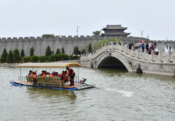 “五一”節(jié)假日期間, 游客在河北省邯鄲市永年區(qū)廣府古城乘船游覽。