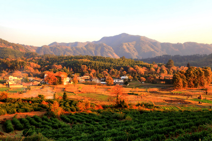 每到秋天,村落田野中錯落有致的烏桕樹葉子紅了,形成一幅迷人的田園風(fēng)光畫卷,塔川秋色也因此得名,并名揚四海。塔川烏桕樹經(jīng)過霜降,由綠變黃,由黃變紅,中間呈七彩顏色。塔川的清晨最美,薄薄的霧氣籠罩在樹上,似有似無,農(nóng)家的小屋若隱若現(xiàn),紅楓叢中忽露出飛檐翹角,粉墻黛瓦在金黃葉子的掩映下,就如中國山水畫般詩情畫意。