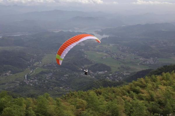 驅(qū)車攀上銅鑼山北坡,直抵海拔680米的黃浦江源滑翔傘基地。云端之上,五彩傘翼掠過竹海碧波,游客的驚呼與歡笑聲交織。通過資源整合,將報福、章村兩鎮(zhèn)的山水優(yōu)勢融合,建成4個起飛場、3個降落場,全年飛行天數(shù)突破300天,打造成為世界一流滑翔傘基地。傘翼劃出的弧線,丈量著片區(qū)化改革的深度。