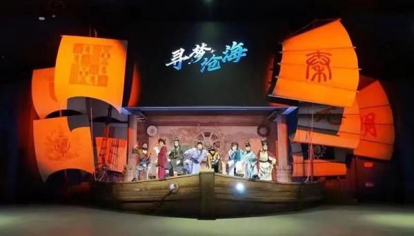 青島奧帆中心海上劇場內(nèi),270度環(huán)繞影像與全景聲場將觀眾包裹于海洋之中,動感座椅模擬真實航海顛簸——中國首部大型沉浸式航海史詩音樂劇《尋夢滄海》每場可容納640人,成為青島海洋文化的動態(tài)名片。