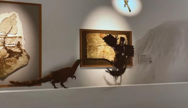 在上海自然博物館內,“龍吟九州·中國恐龍大展”展廳運用先進技術,讓人們裸眼看見中生代時期不同地貌環(huán)境下緩緩移動的恐龍。小觀眾揮動手勢,就能給不同種類的恐龍投喂食物;觀眾還能見到躍然于化石展品上靈活飛行、爬行的小恐龍投影,仿佛恐龍“復活”了。