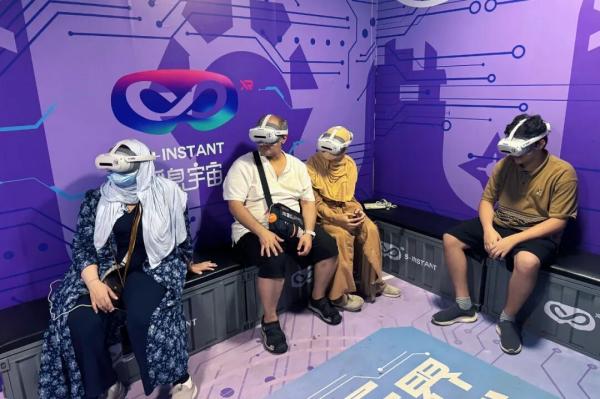 在上海影視樂園黃河路內(nèi),“元宇宙XR全感影院”瞬息魔方項目試運營首日即吸引2000余名游客爭相打卡。體驗者們佩戴輕量化XR設(shè)備,在虛實交融的沉浸空間中穿越星際、探秘深海,通過多維度體感反饋與視覺奇觀開啟“五感全開”的次元冒險。開業(yè)至今,其新奇體驗迅速圈粉——周末高峰時單日體驗人數(shù)超300人,從開館到閉館,熱門主題設(shè)備幾乎一直在運行。候場區(qū)常坐滿等候的游客。已有多名外國游客前來體驗,用不太流利的中文連說“太厲害了”。