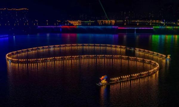 2025年9月14日晚,在第三屆張家界旅游發(fā)展大會前夕,慈利縣放馬洲公園的澧水河畔上演了一場“活態(tài)非遺+科技光影”的盛宴。那條長達500米、由66根竹筏串聯(lián)而成的板板龍燈,結合燈光秀、無人機表演和水幕等現(xiàn)代科技元素,打造出“水陸空”三維沉浸式夜游體驗。