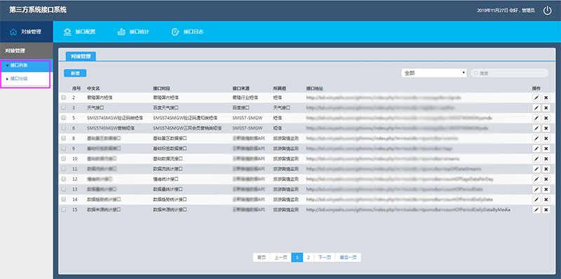 可將接口和接口組進(jìn)行新增、修改、刪除等管理操作,同時(shí)對應(yīng)好接口來源和接口分組的信息