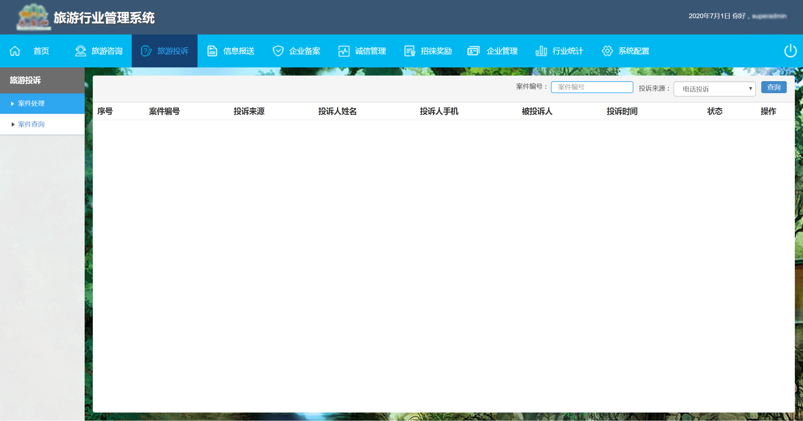 包括咨詢與投訴管理、旅游行業(yè)與涉旅企業(yè)管理、旅游誠信管理等子系統(tǒng),提供游客投訴渠道,對游客投訴的問題進(jìn)行流程化處理、追溯,提升游客游覽滿意度。圍繞旅游企業(yè)信息報送、旅游企業(yè)備案、旅游業(yè)態(tài)評定、旅游行業(yè)統(tǒng)計、旅游從業(yè)人員管理、游客招徠獎勵等全方位管理。針對涉旅商家的誠信評價、不良商家曝光、投訴反饋、商家信用等全面監(jiān)管。
