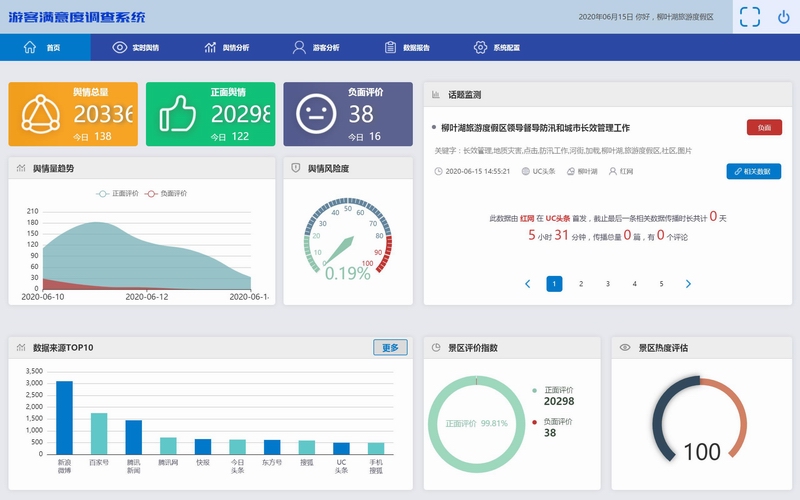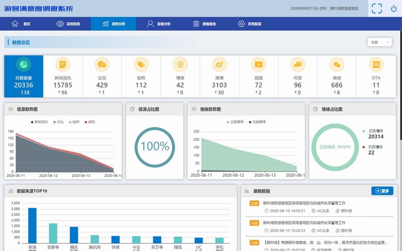 采集主流互聯(lián)網(wǎng)渠道上關(guān)于旅游景區(qū)、住宿、餐飲等方面的評(píng)價(jià)數(shù)據(jù)。得出游客對(duì)景區(qū)、酒店、餐飲等主要旅游要素的正面、負(fù)面、中性評(píng)價(jià)。識(shí)別各景區(qū)、酒店、餐飲網(wǎng)絡(luò)形象變化、市場優(yōu)勢和短板所在。