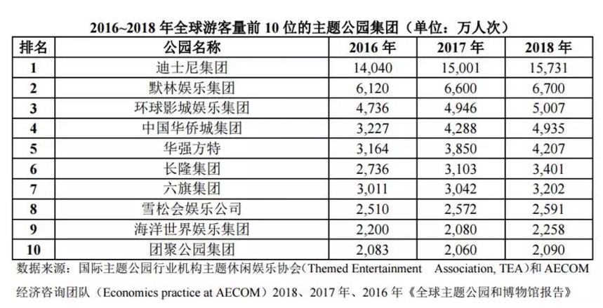 其次,2018年累計4200多萬的游客數量來自旗下20多個樂園,平均下來,每家樂園的年游客量在200萬人左右。而在旅游行業(yè),300萬人的年游客量,是判斷一個主題公園能否盈利的一個重要平衡點。