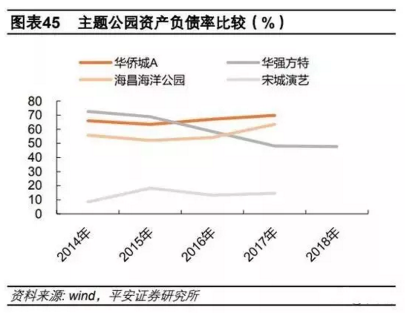 值得注意的是,隨著華強方特轉向輕資產輸出的路徑,公司資產負債率逐年下降。這是目前幾乎所有主題公園品牌都在轉型的方向。海昌海洋公園輕資產戰(zhàn)略起步較晚,又新開了兩個重資產項目,導致其凈負債率從前一年的77.8%驟升至2018年的135.7%。而典型輕資產模式的宋城演藝,剝離六間房后,資產負債率只有10.43%。