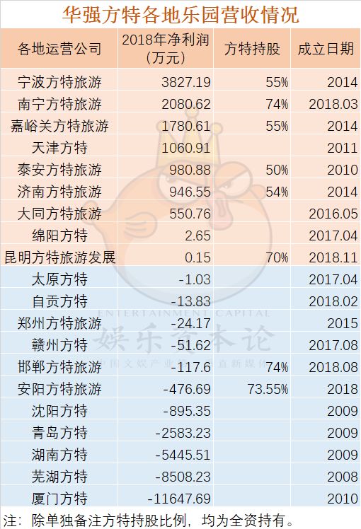 首先,華強方特位于各地的主題公園運營公司中,有一半左右處于虧損的狀態(tài),其中廈門方特2018年虧損超1億元,蕪湖方特2018年虧損8500多萬元……