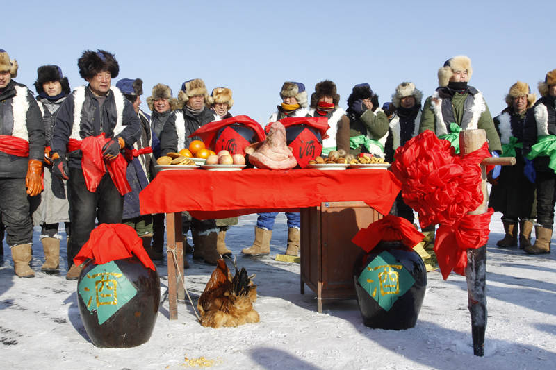 傳統(tǒng)冬捕包含醒網(wǎng)、祭祀、捕魚(yú)。早上起來(lái),魚(yú)把頭們要在冰面上祭祀。祈禱明年風(fēng)調(diào)雨順、漁業(yè)豐收。儀式過(guò)后的捕魚(yú)場(chǎng)面可謂十分壯觀,漁民們一網(wǎng)下去可撈起來(lái)數(shù)萬(wàn)多斤魚(yú),現(xiàn)場(chǎng)還需要?jiǎng)佑么笮蜋C(jī)械,花費(fèi)半天的時(shí)間,才能把數(shù)千米的魚(yú)網(wǎng)拉起來(lái),場(chǎng)面震撼,冰面上,帶有九臺(tái)特色的薩滿文化祭祀儀式開(kāi)始,祈愿著平安祝福。祈福聲、歡呼聲、魚(yú)把頭喊號(hào)聲,交織成一幅熱鬧非凡的漁獵文化盛景。