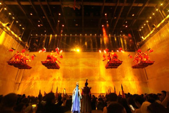 《沙坡頭盛典》以中衛(wèi)沙坡頭“桂王城”“沙坡鳴鐘”“沙掩王城”“淚泉”等古老傳說為故事原型,首創(chuàng)沉浸式情境體驗,通過運(yùn)用全息影像、AR技術(shù)應(yīng)用、玻璃晶球、巨型升降平臺等9D舞美前沿科技,實現(xiàn)了從空間、科技、文化乃至藝術(shù)表現(xiàn)形式等方面的“七大”創(chuàng)新突破,推動寧夏文化與旅游、科技的深度融合,助推中衛(wèi)乃至寧夏文化旅游和云產(chǎn)業(yè)的全面發(fā)展,推動全域旅游快速發(fā)展。
