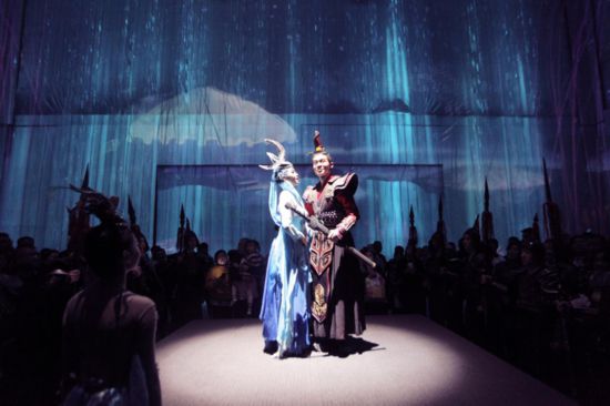 《沙坡頭盛典》首次將魔幻元素融入旅游,并且通過擬人化的表達(dá)方式將沙坡頭三大核心元素沙漠、黃河、綠洲刻畫成為劇中的沙王子、長河公主、桂王子三大主人公,分別代表魔、仙、人三界統(tǒng)領(lǐng)。本劇圍繞主人公桂王子(代表中衛(wèi)先民)與沙王子(代表沙漠災(zāi)害或沙魔)對長河公主(代表黃河,象征生命與未來)的求親角逐展開,最終以桂王子與長河公主完美結(jié)合,并成功抵御沙魔入侵結(jié)尾。全劇通過一段魔幻愛情故事演繹沙坡頭的前世與今生,讓游客體味與人、仙、魔接觸的逸趣。
