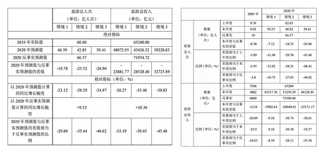 中國社會(huì)科學(xué)院旅游研究中心的研究顯示,在謹(jǐn)慎預(yù)測的情境下,2020年旅游總?cè)舜蔚念A(yù)測值為39.41億人次,比上年同期下降34.97%;旅游總收入的預(yù)測值為39228.83億元,比上年同期下降39.83%。疫情造成2020年旅游總?cè)舜蔚臐撛谙陆狄?guī)模為26.96億人次、下降比例為40.62%,造成旅游總收入的潛在損失為32725.89億元、損失比例為45.48%。