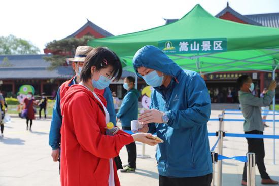 嵩山景區(qū)時刻將游客的生命安全放在第一位,科學防控疫情。每天對游客中心、觀光車、休息區(qū)等旅游接待場所以及基礎設施實行一日三次的環(huán)境衛(wèi)生消殺。按照“先掃碼量體溫再入園”的防疫要求,在景區(qū)入園及游客聚集處,設置多個游客分流通道,引導游客進行健康碼驗證,進行體溫監(jiān)測與游客自助刷票入園,快速分散人流,防止游客聚集,加快了游客的進園速度。景區(qū)的觀光車施行半數(shù)滿員政策,每輛車承載游客不超過荷載人數(shù)的二分之一。增加各類安全類標識標牌1000余個,在游客中心廣場、入口、景點、觀光車乘車點等重點區(qū)域增派工作人員,時刻提醒游客做好個人防護,遵守景區(qū)防護措施,確保游客安全游覽。