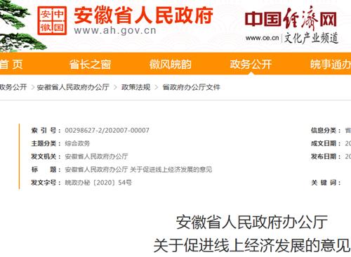 安徽省人民政府辦公廳關(guān)于促進(jìn)線上經(jīng)濟(jì)發(fā)展的意見