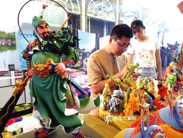 一把把寬大厚實的手工蒲扇、一個個惟妙惟肖的面塑和糖人、一幅幅金燦燦的麥稈畫……活動現(xiàn)場,琳瑯滿目的非遺工藝品吸引了眾多上海市民駐足圍觀,這些特色工藝品無不體現(xiàn)著鹽都區(qū)非遺項目的獨特魅力和鹽城文旅特色。