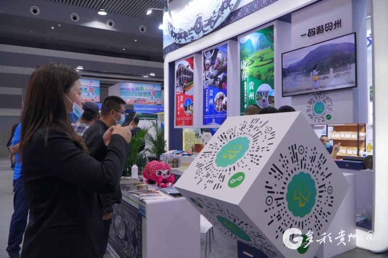據(jù)了解,立方體展覽臺上的二維碼是由貴州省文化和旅游廳全新推出的“一碼游貴州”全域智慧旅游平臺二維碼,該平臺也是本次貴州館展覽的一大亮點。