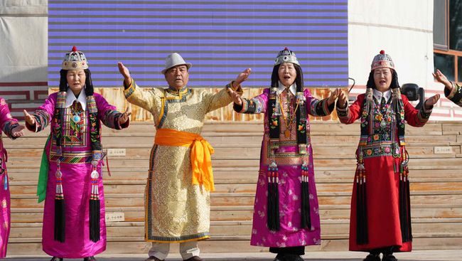 化上精致的妝容,換上民族服飾,向游客們展示蒙古族歌曲和蒙古族英雄史詩《江格爾》,是53歲的冉爾再每天最期待的事情。