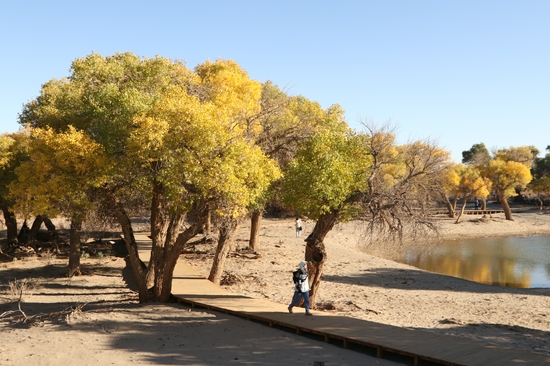 額濟納旗胡楊林位于巴丹吉林沙漠邊緣,與非洲的撒哈拉沙漠、新疆的塔克拉瑪干沙漠并列為全球僅存的三大胡楊林觀賞地。每到10月份,國內外的游客紛至沓來,各式“長槍短炮”,將胡楊林的美景定格。