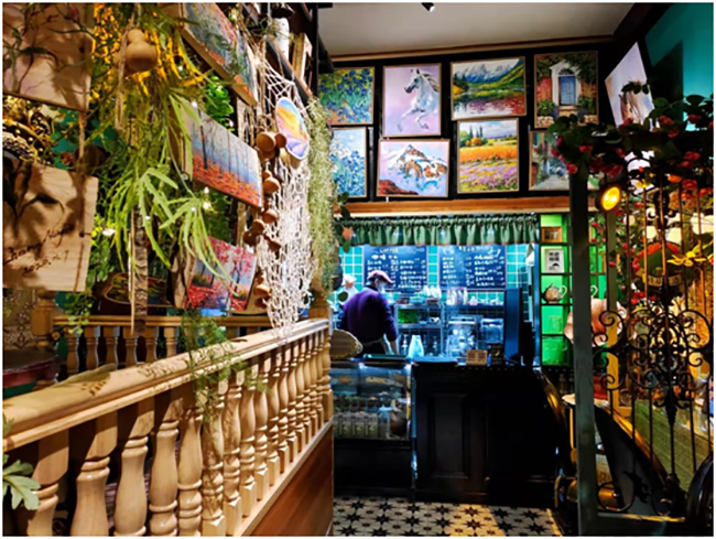 大泥溝頭村青年張友杰在某職業(yè)中專學(xué)習(xí)素描,回村看到新建的畫院之后,經(jīng)過一番考察,他毅然決定選擇退學(xué),跟隨畫院老師學(xué)習(xí)油畫,學(xué)習(xí)5年后,張友杰在村里獨立門戶接單創(chuàng)作,完成了創(chuàng)業(yè)人生的最初積累。2017年,張友杰創(chuàng)辦了自己的油畫咖啡館、藝術(shù)畫廊和民宿項目,嘗試將油畫創(chuàng)作和日常生活相結(jié)合。如今,他的咖啡館已成為網(wǎng)紅打卡地,一條抖音的點擊量就達(dá)到3.5萬人次。