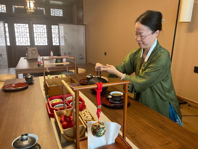 她的父親做茶葉包裝生意,需要請(qǐng)?jiān)u茶員對(duì)茶葉品質(zhì)進(jìn)行評(píng)定。為此,沈燕去學(xué)了評(píng)茶員和茶藝師,也因此結(jié)識(shí)了不少喜歡茶藝的朋友?!芭莶栊枰┎璺?,接觸深了之后就開始了解漢服,從此對(duì)漢服文化的喜愛就越來越深。”