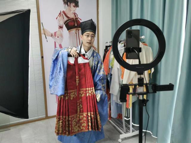 那時(shí)淘寶上還沒有漢服可買,沈燕就去博物館查看文獻(xiàn)資料,一邊研究,一邊自己制作。漢服完工后,她在社交平臺(tái)將自己的成果進(jìn)行分享,漢服圈的朋友知道她會(huì)制作漢服后,就讓她幫忙定制。漸漸的,訂單越來越多。