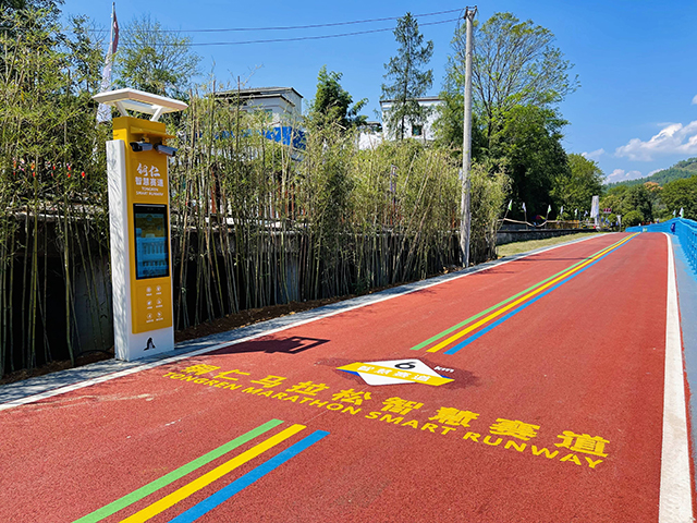 整條賽道全長43公里,途經20多個村寨,沿錦江河鋪設,終點訖于江口兩河口河岸。沿途每5公里配置一個芯片數據采集點,可通過人臉識別和芯片識別兩種方式自動記錄運動成績,同時配置陪跑燈光、自動感應淋浴系統(tǒng)、智慧AED救援站、智能心率柱、智能存包柜等設備設施,實現科技和生態(tài)、體育和旅游的完美交融,讓廣大運動愛好者樂在其中,獲得更多的參與感和體驗感······