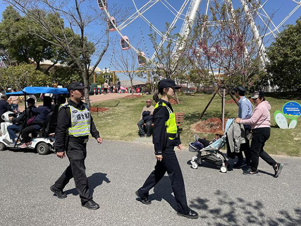 “櫻花林木棧道”是公園內(nèi)傳統(tǒng)“網(wǎng)紅打卡點(diǎn)”,每年櫻花季都會(huì)吸引大批游客駐足“打卡”留影,但原本的臺(tái)階設(shè)計(jì)在大客流期間存在一定安全隱患。在民警的建議下,園方已對(duì)木棧道進(jìn)行了坡道改造,這樣不僅對(duì)推行輪椅、童車(chē)的市民游客更為友好,也有效減少了客流擁擠時(shí)發(fā)生絆倒、扭傷等意外的情況。為防發(fā)生大客流對(duì)沖,園內(nèi)“網(wǎng)紅”打卡點(diǎn)也將成為民警駐守巡查的重點(diǎn)區(qū)域。同時(shí),今年櫻花節(jié)大客流期間,寶山警方還將出動(dòng)警用無(wú)人機(jī),與地面警力相配合,實(shí)現(xiàn)“空地一體化”客流疏導(dǎo)管控。