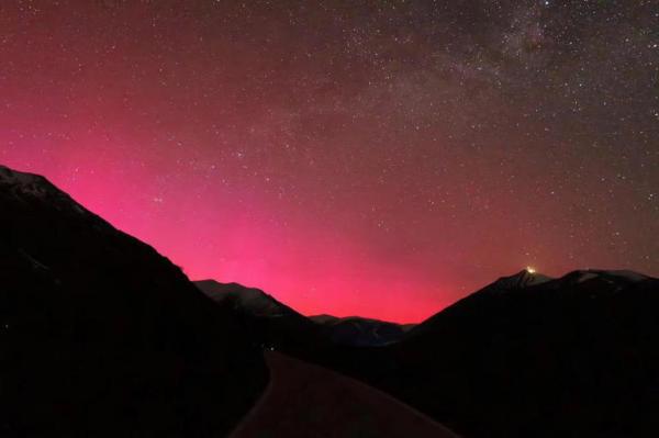 據(jù)中國(guó)科學(xué)院空間環(huán)境研究預(yù)報(bào)中心發(fā)布的消息,5月11日2時(shí)至14時(shí),地磁發(fā)生強(qiáng)烈擾動(dòng),為2004年11月以來(lái)最強(qiáng)地磁暴。由于阿勒泰境內(nèi)的禾木村處于中緯度地區(qū),太陽(yáng)粒子在較高海拔與低濃度氧氣產(chǎn)生反應(yīng),呈現(xiàn)出的極光以紅紫色為主。