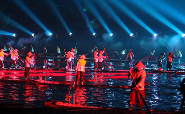 本世紀(jì)初,首部山水實(shí)景演藝《印象·劉三姐》開創(chuàng)了旅游演藝的早期形式。曾經(jīng),人們來(lái)到桂林順漓江而下游玩三山、兩洞、一條江之后,就會(huì)踏上歸途,陽(yáng)朔的夜晚對(duì)每年幾百萬(wàn)游客來(lái)說(shuō)是陌生的。《印象·劉三姐》的出現(xiàn)點(diǎn)亮了漓江的夜空,到訪桂林的游客不僅白天可以在自然風(fēng)光中領(lǐng)略秀甲天下的山水之美,晚上還能欣賞到融經(jīng)典山歌、民族風(fēng)情、漓江漁火等地域元素于一體的精彩演出。這種以真山真水為演出舞臺(tái),以當(dāng)?shù)匚幕袼诪橹饕獌?nèi)容的獨(dú)特演藝形式,很快收獲了可觀的社會(huì)效益和經(jīng)濟(jì)效益。一批深受游客喜愛并為旅游目的地提升文化含量的旅游演藝大量涌現(xiàn)。麗江、武夷山等地的“印象系列”,五臺(tái)山、平遙“又見系列”,以及《長(zhǎng)恨歌》《宋城千古情》《穿越德化街》等大型實(shí)景演藝廣受游客歡迎,節(jié)假日期間很多演出一票難求。
